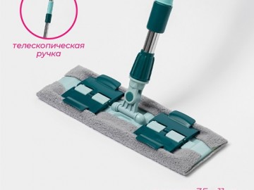 Швабра с насадкой из микрофибры, механизм БАБОЧКА, телескоп черенок 110см сталь