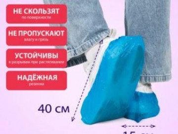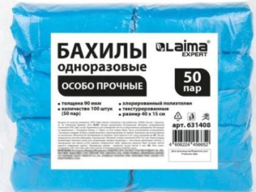 Бахилы одноразовые нестерильные особо прочные. Изготовлены из хлорированного полиэтилена. Обладают высокой износоустойчивостью. Текстурированная поверхность препятствует скольжению. Крепкая эластичная резинка для надёжной фиксации на обуви.